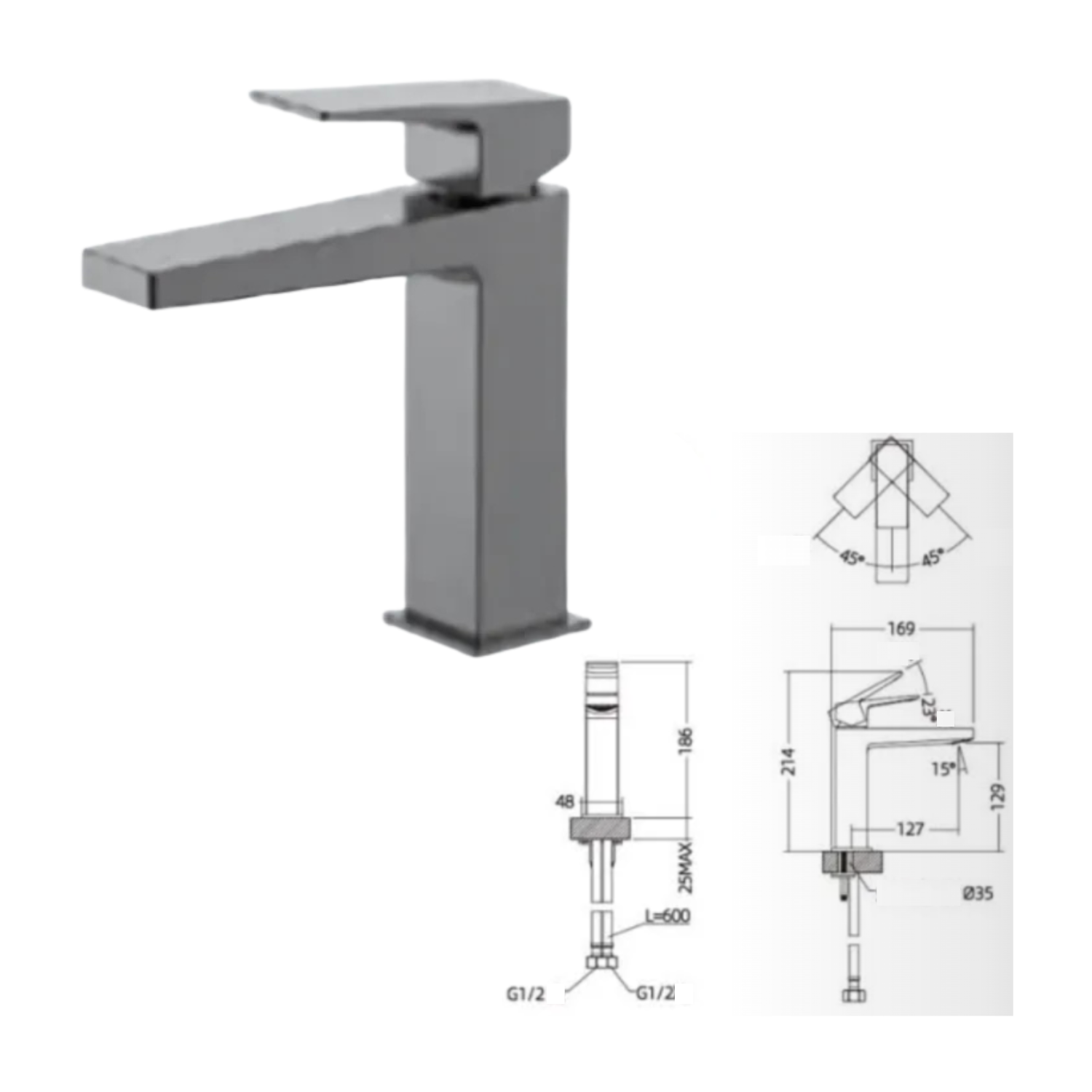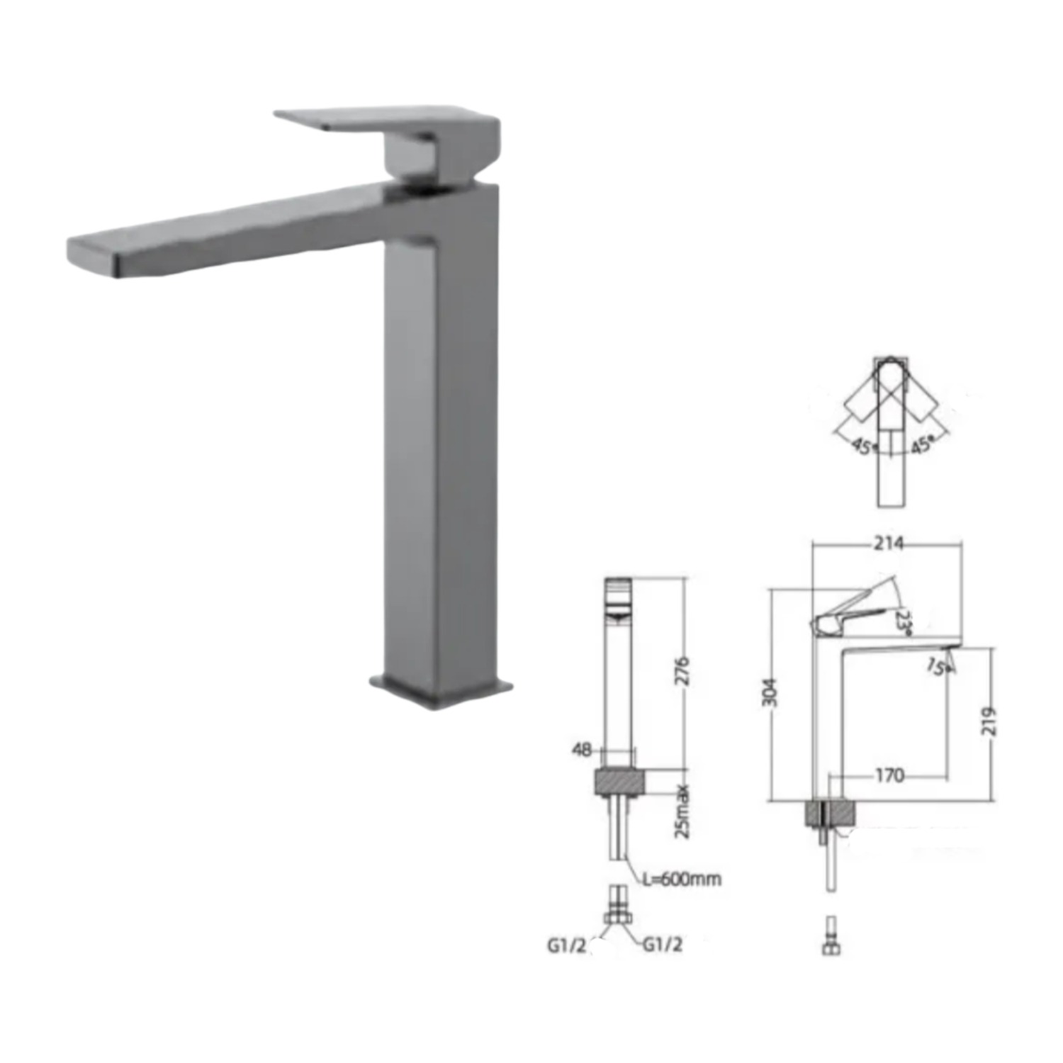 Material: Brass Color: Chrome Plating (CP) / Brushed Black (BK) Accessories: Does not contain water